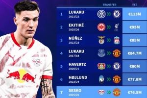 英超历史最贵前锋排行:卢卡库&哈弗茨梅开二度,前十曼联占三次